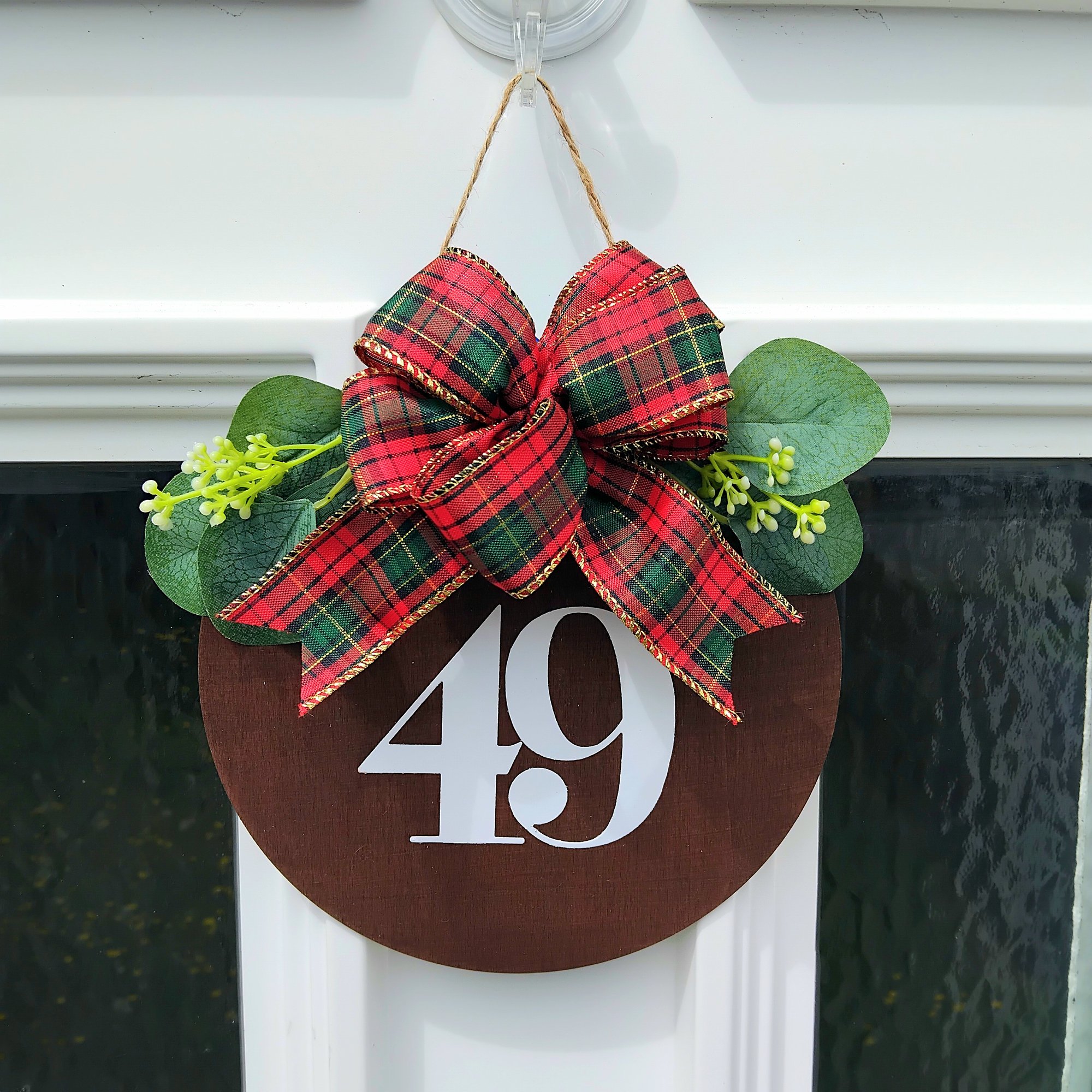 8" Handmade House Number Door Sign, Tartan House Number Sign, Home Decor, Tartan New Home Gift