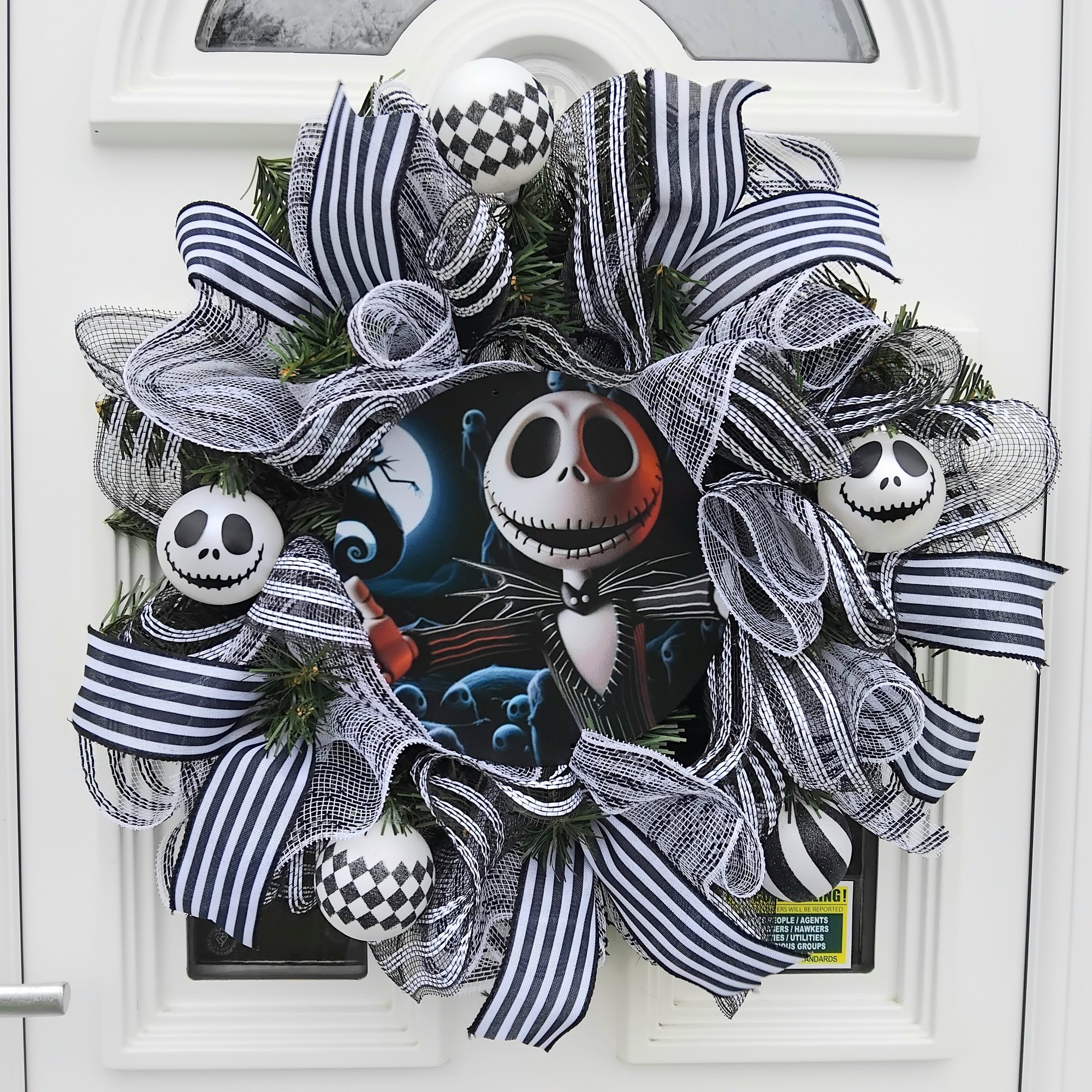 Enhance your holiday decor with this cute Wreath, a delightful NBC Door Wreath perfect for Christmas. This Door Wreath adds a monochrome touch to your home, spreading cheer and warmth. Celebrate the season with this charming wreath that captures the spirit of Christmas.