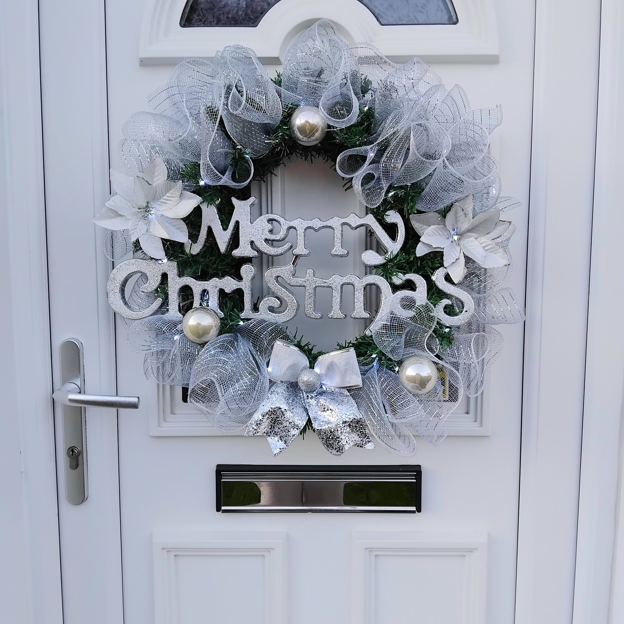 Silver Christmas Wreath, Wall Decor, Door Wreath